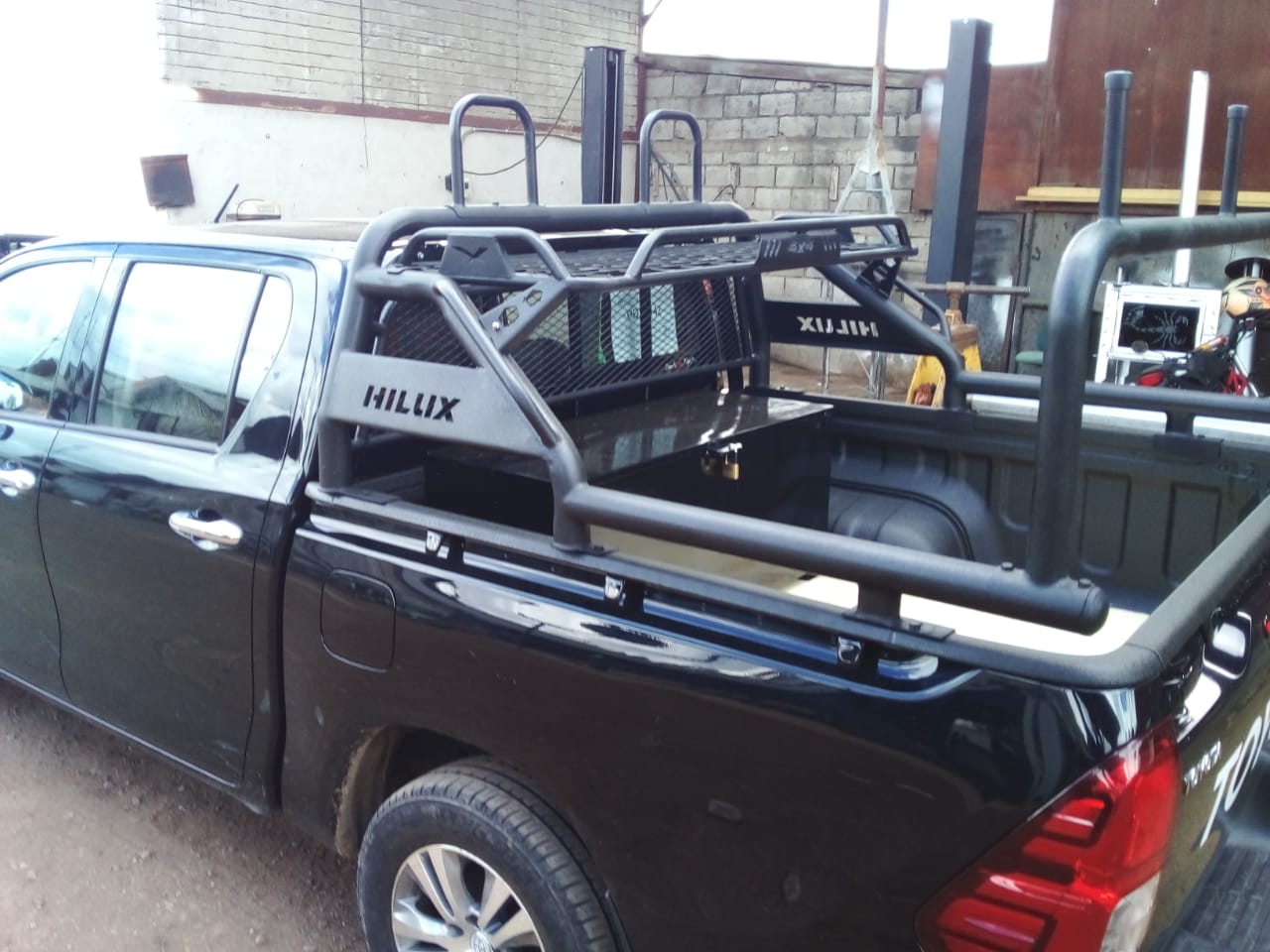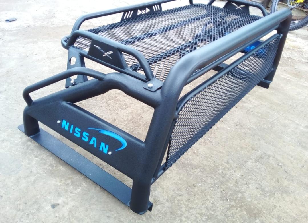 DESCRIPCION: FABRICADO EN : TUBO DE 2" 1/2 X2 PLACAS LATERALES PERSONALIZADAS Y ALARGADAS BASES PERSONALIZADAS EN 4MM CANASTILLA DESMONTABLE C OLOR: NEGRO POLIURETANO MAS: KIT DE INSTALACION